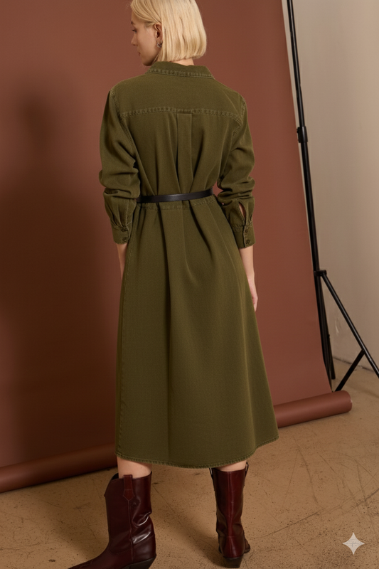 Collared Button Down Midi Dress