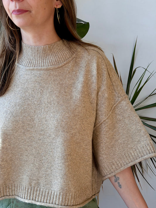 Marled Mock Neck Short Sleeve
