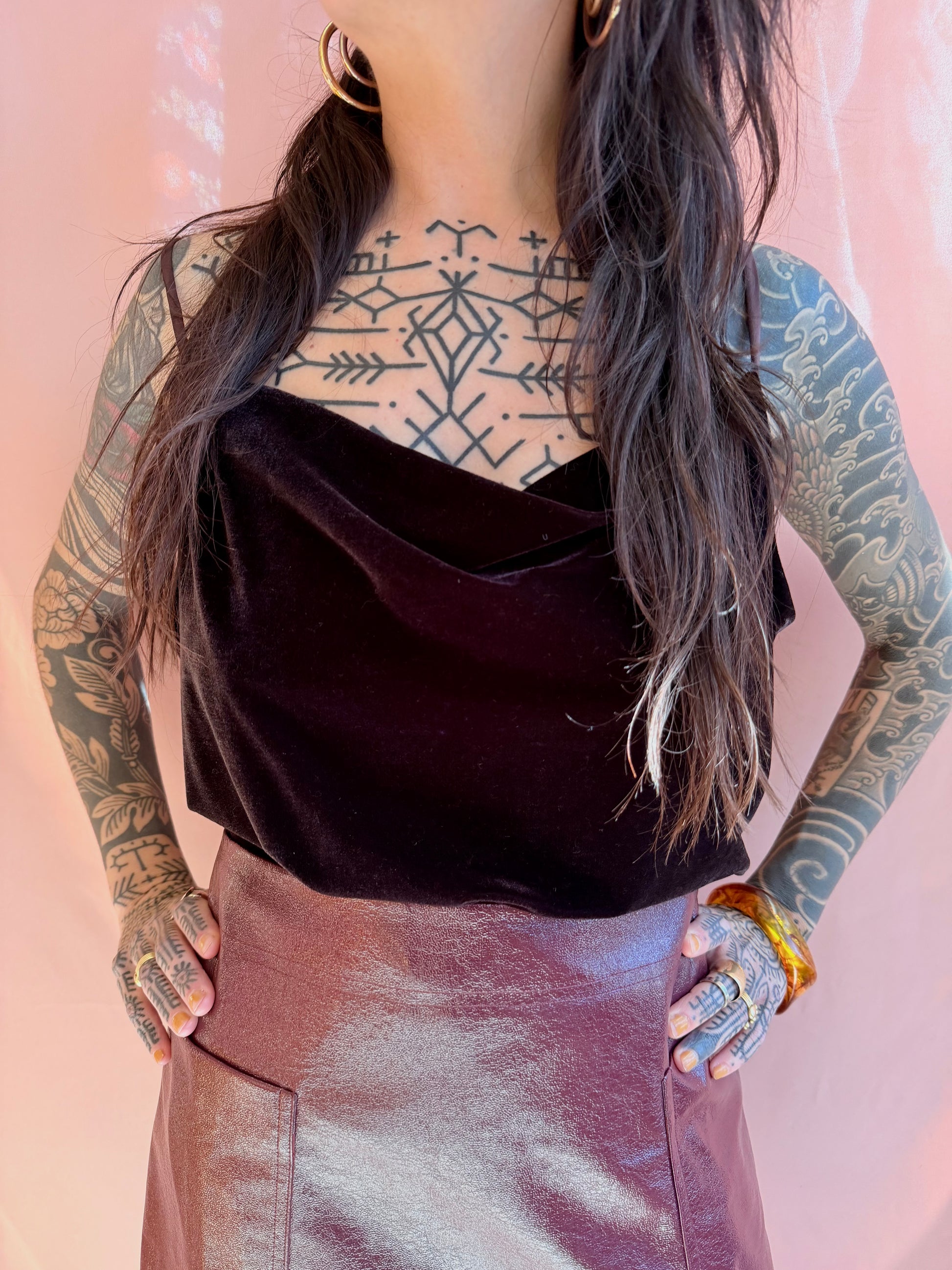 Stretch Velvet Cowl Neck Camisole